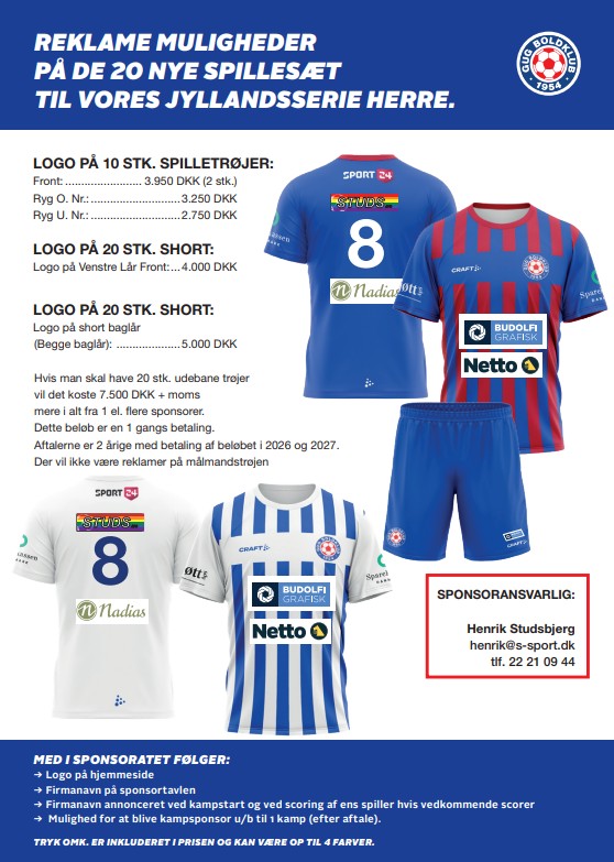 Kontakt sponsoransvarlig Henrik Studsbjerg og hør om de mange muligheder.
