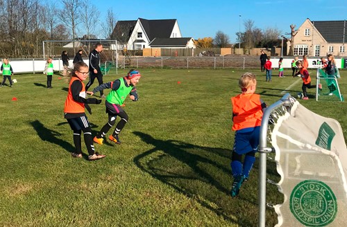 Træningen startede med en kort velkomst efterfølgende af lidt opvarmning, hvor pigerne skulle drible med bolden for at få følelsen med at løbe med en bold. Der blev lavet en agilitybane med hop og slalom for at træne pigernes motorik og koordination, samt en post med spil på bande og afslutning på mål. De sidste 15 minutter blev pigerne delt op i hold, hvor de spillede kampe mod hinanden på tremandsmål.