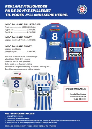 seniorafdelingen skal spille i den nye klubtrøje. Hjælp derfor meget gerne klubben og sponsoransvarlig Henrik Studsbjerg med at skaffe nye sponsorer til vores hold.